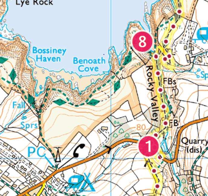 I have included the walk map below. From number 8 if you continue along and follow the green dotted line (coastal path) along the coast and then up through the field, you will find yourself at the carpark (where it says PC on the map) This also means toilets, so you can use these before you head home!
