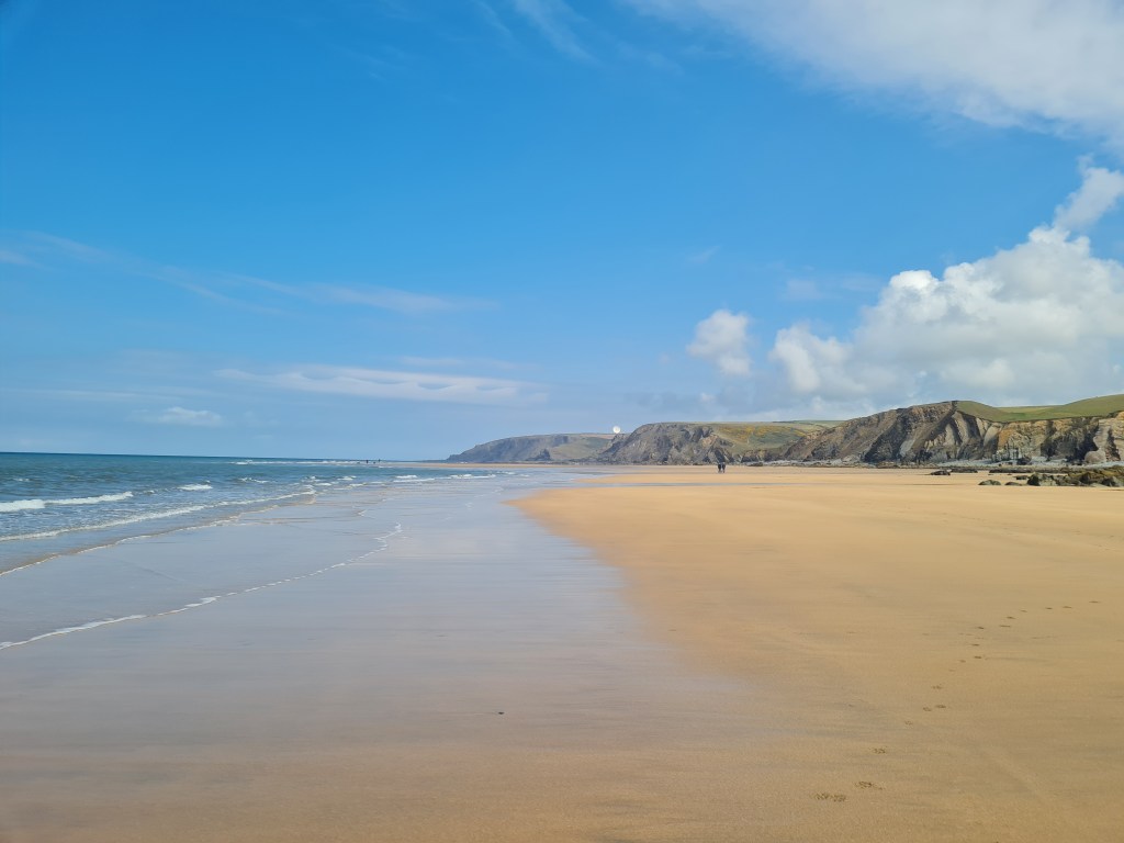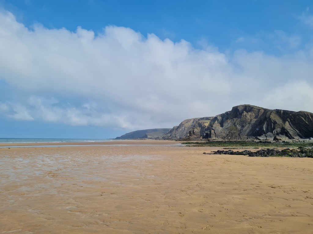 Sandymouth is one of the most incredible beaches we have visited. It is huge, you can walk for miles in both directions! It is a sandy beach, surrounded by incredible cliffs. You wont regret visiting here!