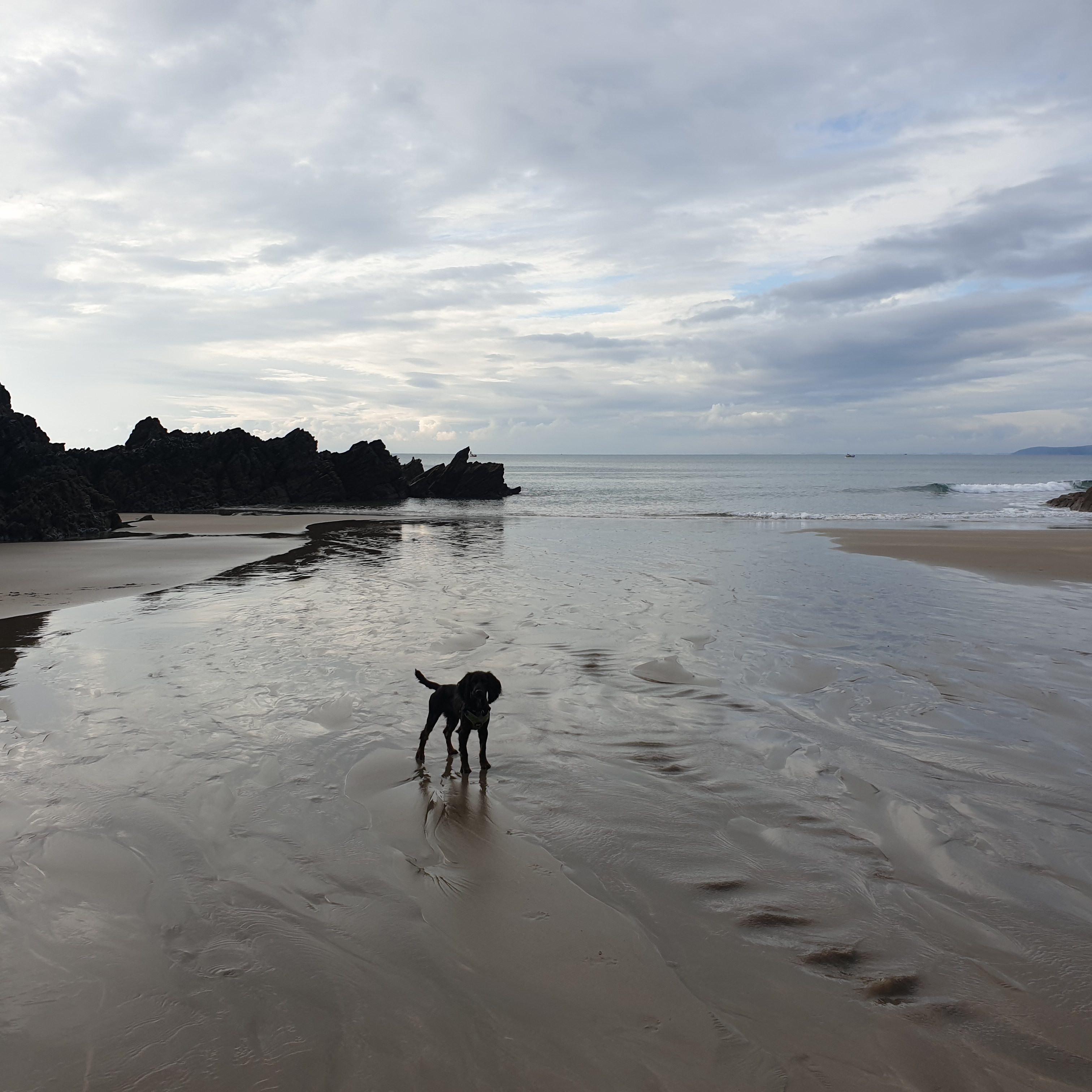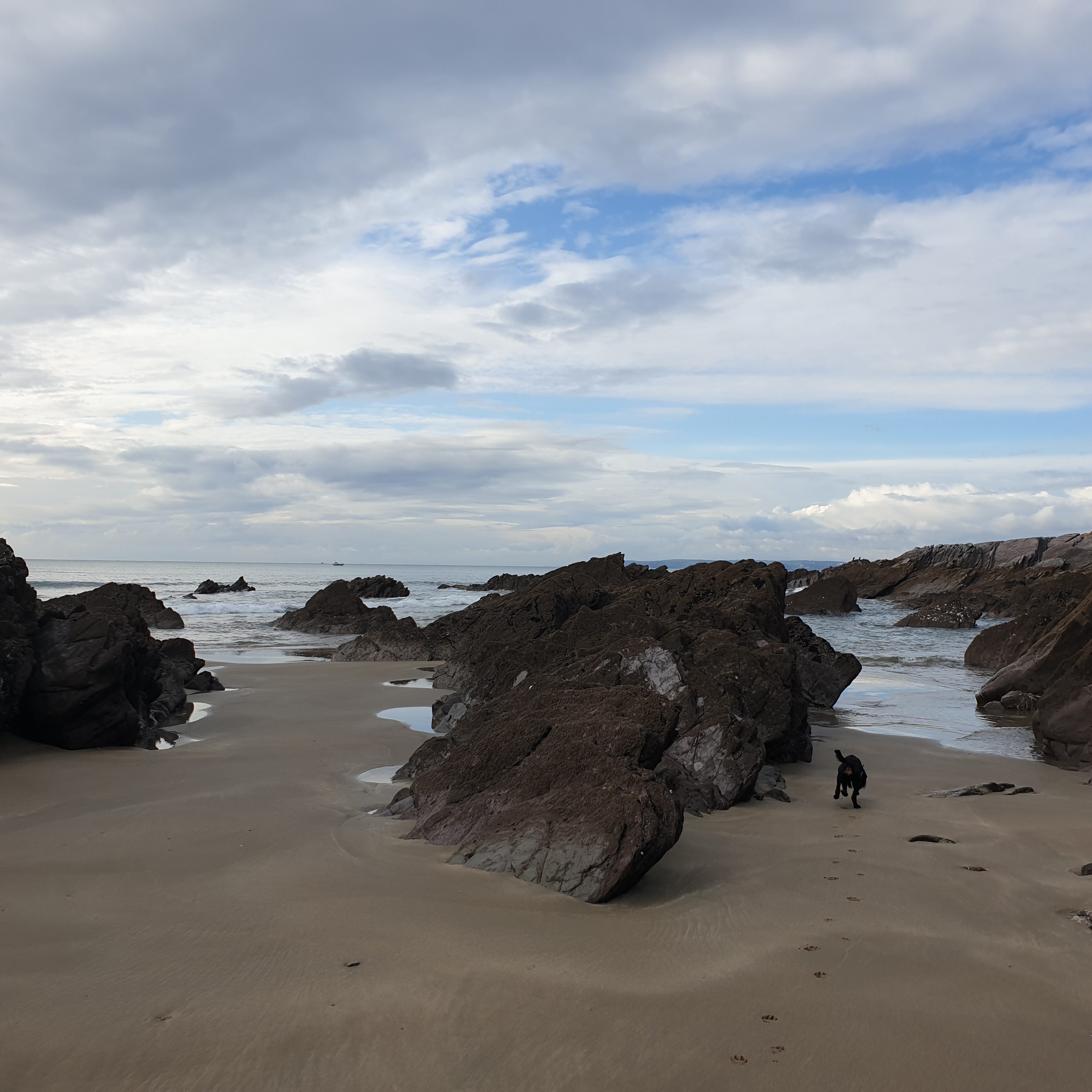 Across the road and down the steep path you can access the beach. There is a wide sandy beach at low tide but there is still some beach at high tide.