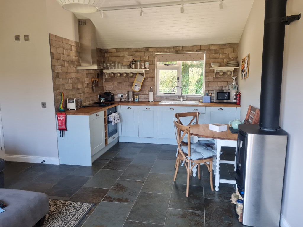 When we entered the lodge, you could tell it had been fitted to the best standard. The open plan kitchen, dining and living room was spacious and modern. The kitchen had all the mod-cons that you need for a comfortable stay. There is also a log burner in the living room, to keep you toasty in the evening! Good for the dogs to dry off in front of, after a day on the beach!
