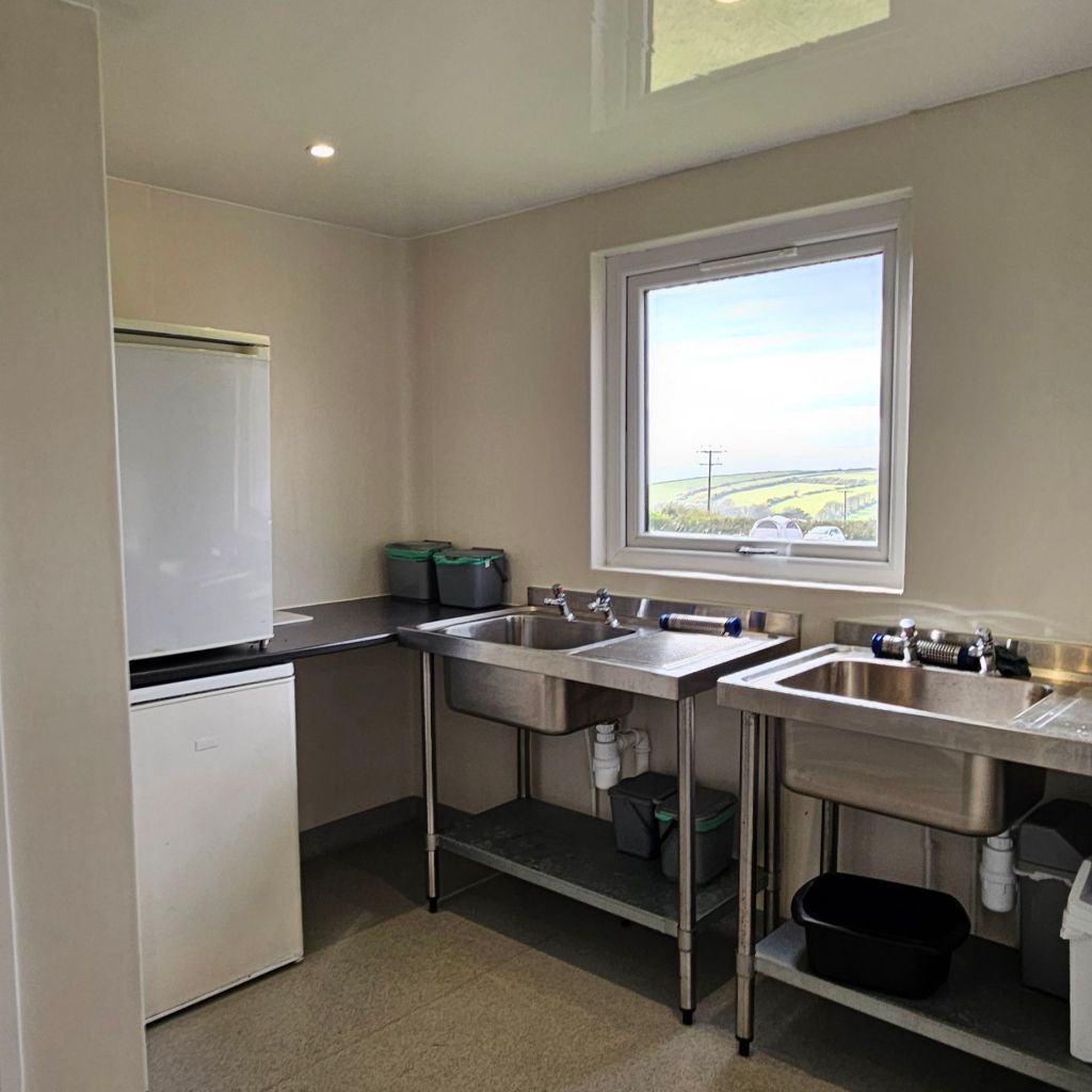 They also have a nice kitchen area for washing up, which even has a fridge and freezer to use!